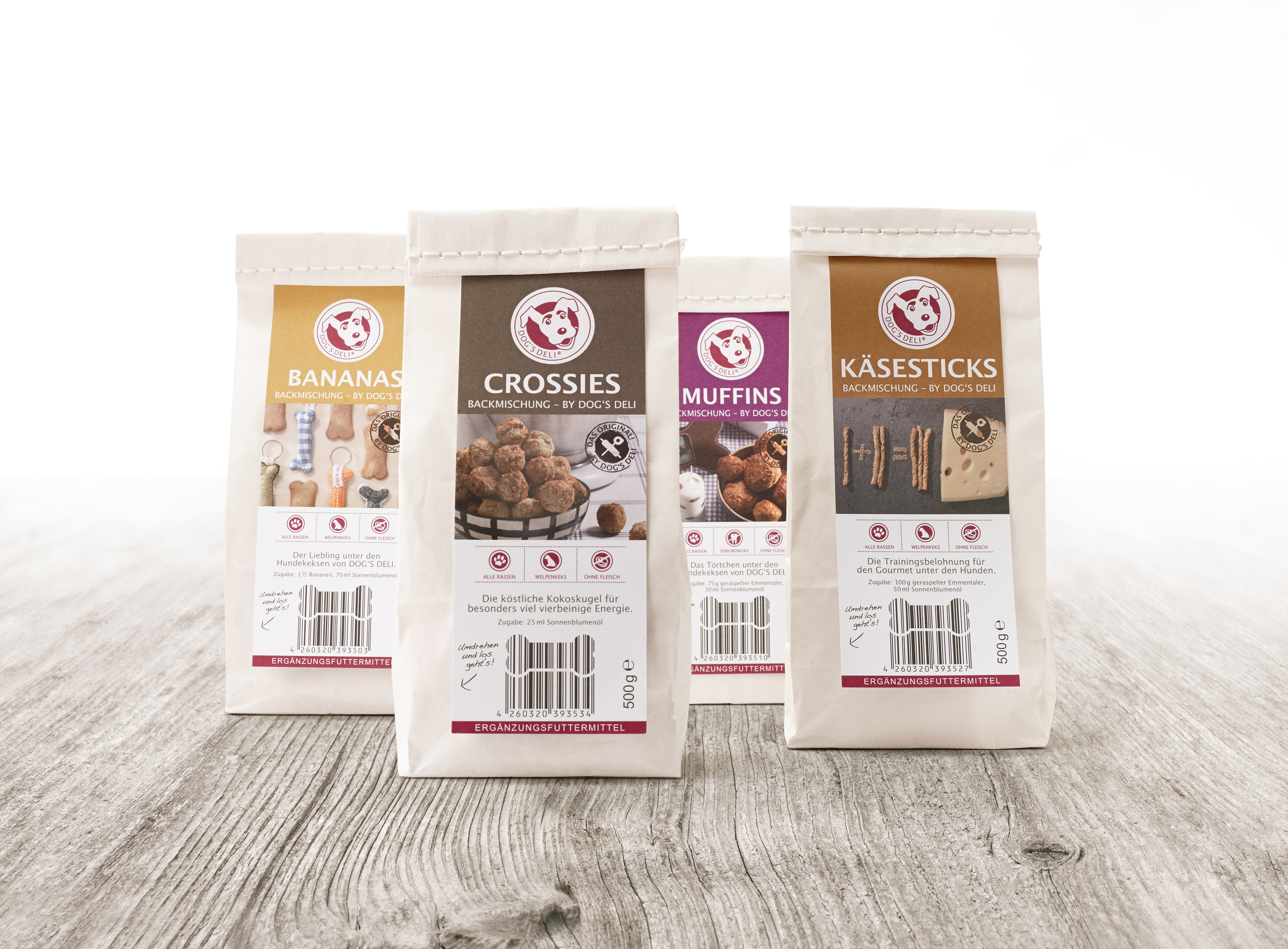 Der Liebling unter den Hundekeksen von DOG´S DELI!Das müsst Ihr noch hinzugeben: 1 1/2 Bananen, 70 ml Sonnenblumenöl und Wasser.Eine Backmischung ergibt ca. 400 Gramm Kekse. Grundpreis 9,80€ / 1kg